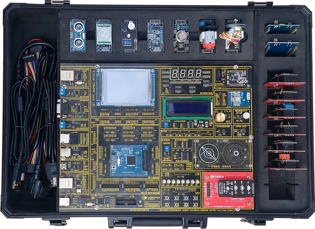 嵌入式系统综合实验平台是基于32位微控制器的嵌入式系统相关课程的教学需求而研发的。本实验系统支持的核心处理器有ARM7 (NXP LPC2138)、Cortex-M3(LPC1343、STM32F103、STM32F207)和Cortex-M4(STM32F401、STM32F407)。结合Proteus软件平台,用仿真的方法进行实验(部分处理器不支持仿真),并在实际的硬件平台上验证仿真结果。学生即可以通过该实验系统的仿真了解相应实验的技术细节,又可以通过实际硬件电路的运行结果建立对实验的感性认识。